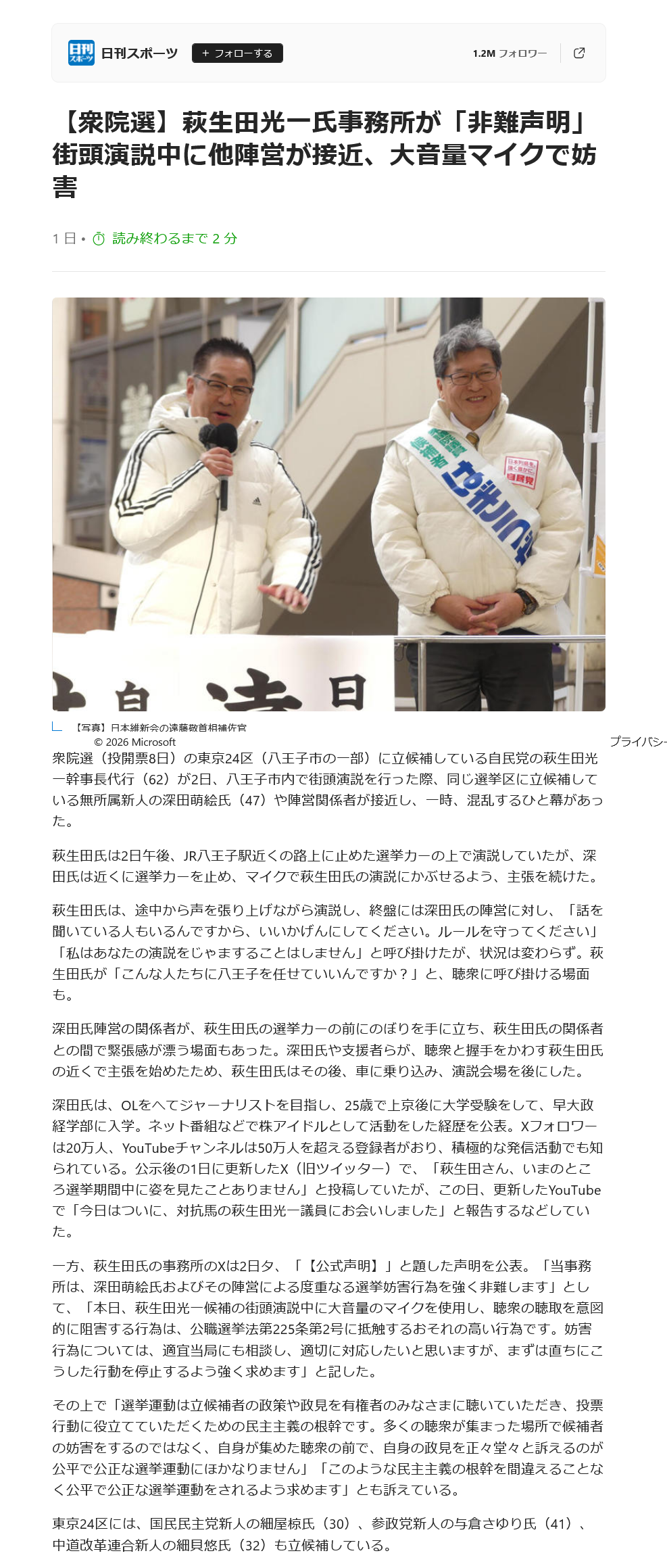 【衆院選】萩生田光一氏事務所が「非難声明」街頭演説中に他陣営が接近、大音量マイクで妨害